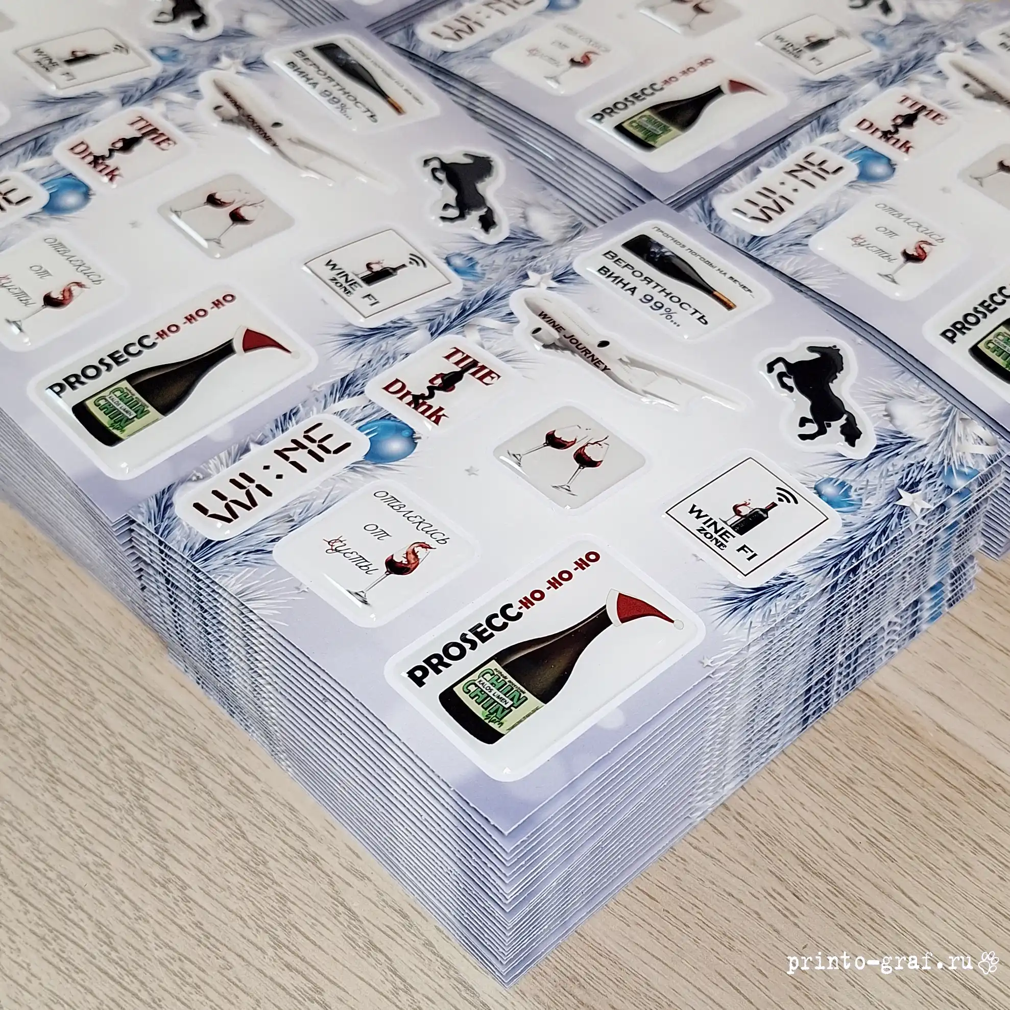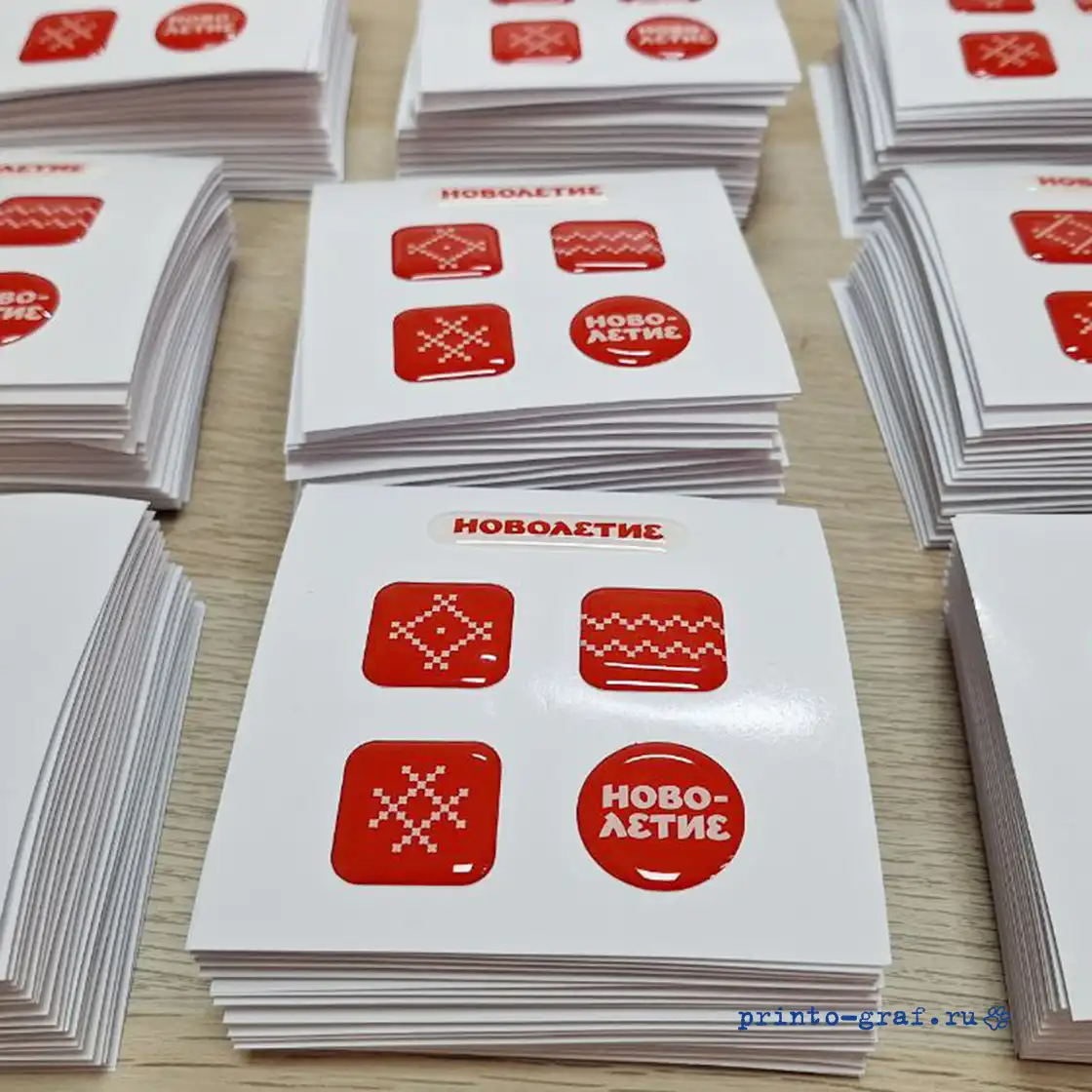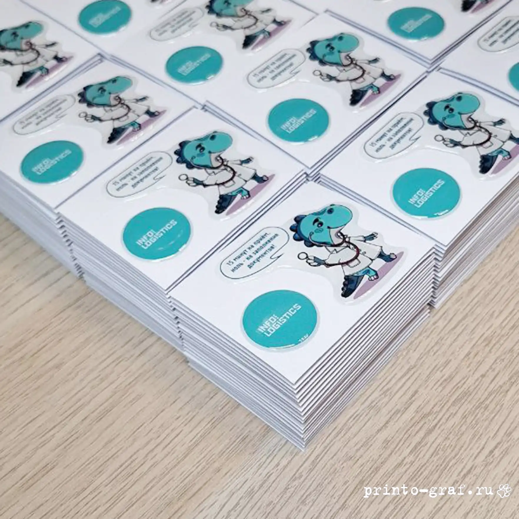 Типография Принто-граф предлагает изготовление объемных стикеров из эпоксидной смолы. Срочная печать займет 3 рабочих дня, изготовление смоляных стикеров в стандартном режиме 4-9 дней. В ноябре и декабре, ввиду загруженности производства сроки сдачи тиражей могут незначительно сдвигаться. Материал для заливки: эпоксидная смола прозрачного цвета. Тип: мягкая. Метод изготовления: заливка эпоксидной смолы по контуру. Печать заготовок матовой или глянцевой пленки осуществляется на широкоформатном японском плоттере MIMAKI JV 150-160. Контурная резка выполняется на автоматической режущей системе Intec ColorCut SC5000 с оптическим датчиком. Перед началом работы оборудование калибруется. Качество печати на производстве проверяет ОТК. Объемные стикеры легко отделяются от основы и надежно держатся на твердой поверхности. Готовая продукция запаивается в термоусадочную пленку и упаковывается в фирменные пакеты типографии.