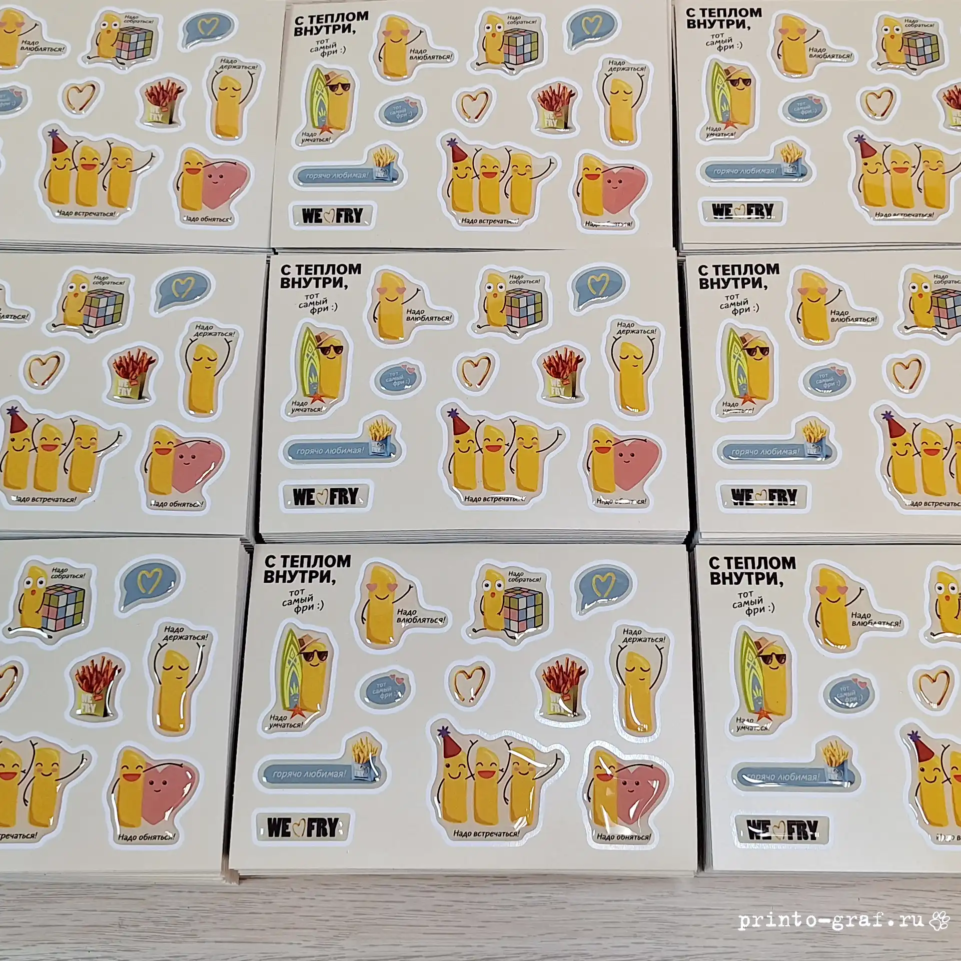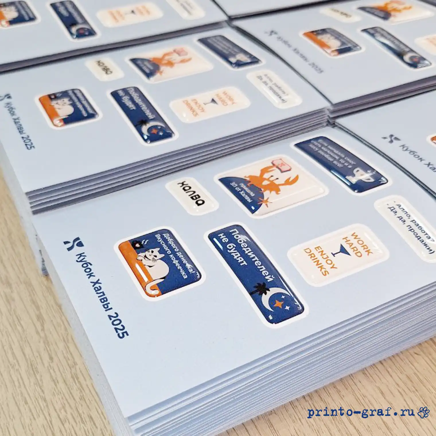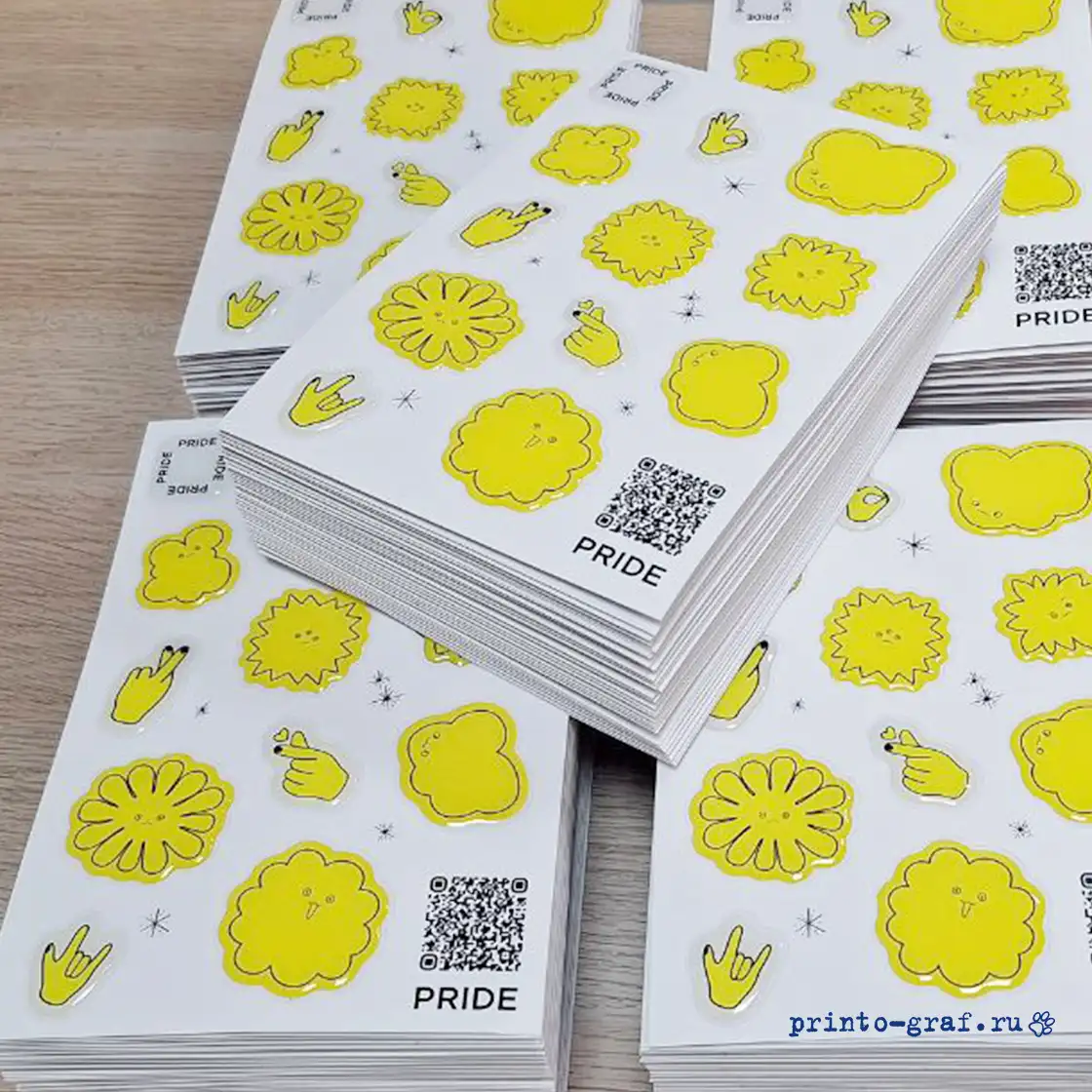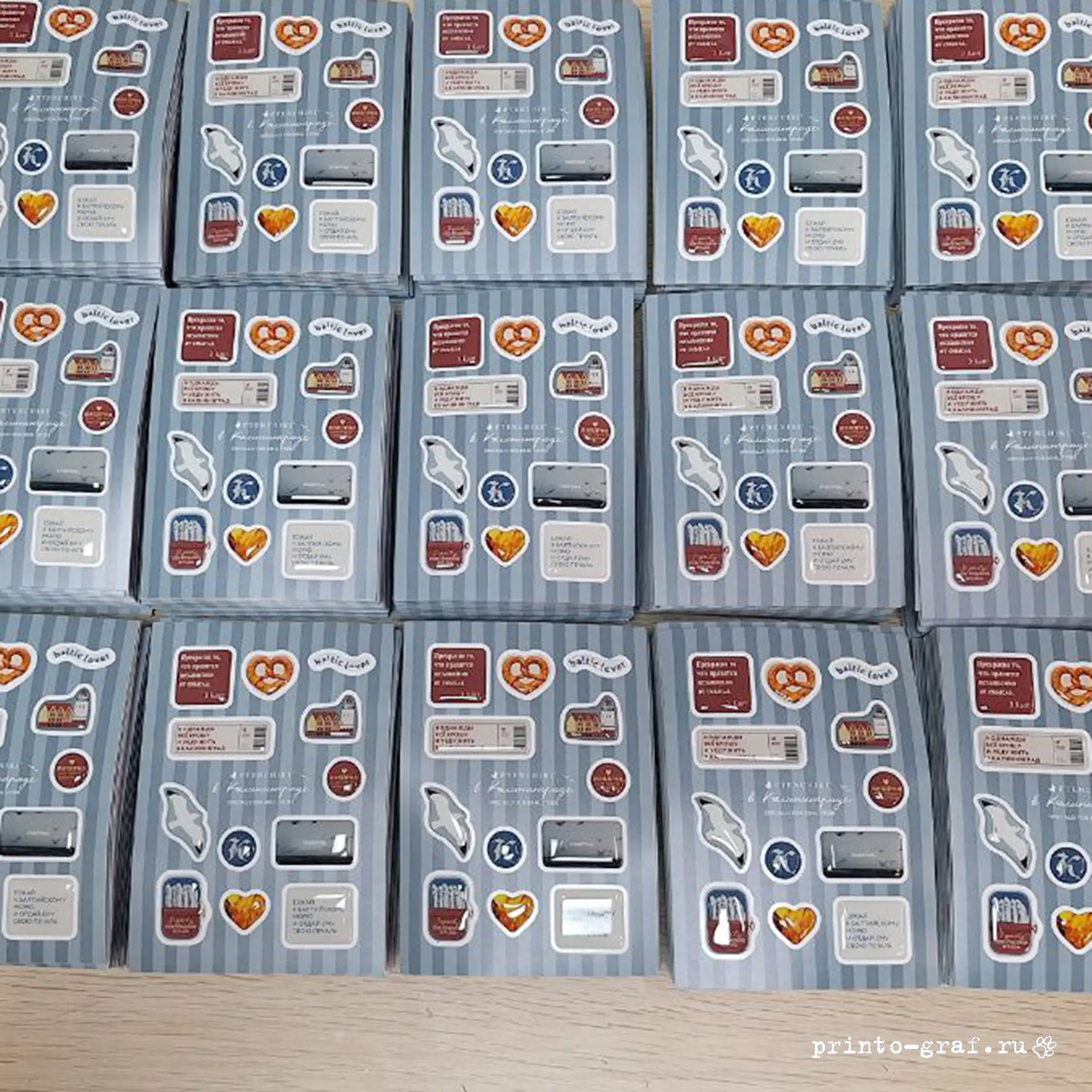 Типография Принто-граф предлагает изготовление объемных стикеров из эпоксидной смолы. Срочная печать займет 3 рабочих дня, изготовление смоляных стикеров в стандартном режиме 4-9 дней. В ноябре и декабре, ввиду загруженности производства сроки сдачи тиражей могут незначительно сдвигаться. Материал для заливки: эпоксидная смола прозрачного цвета. Тип: мягкая. Метод изготовления: заливка эпоксидной смолы по контуру. Печать заготовок матовой или глянцевой пленки осуществляется на широкоформатном японском плоттере MIMAKI JV 150-160. Контурная резка выполняется на автоматической режущей системе Intec ColorCut SC5000 с оптическим датчиком. Перед началом работы оборудование калибруется. Качество печати на производстве проверяет ОТК. Объемные стикеры легко отделяются от основы и надежно держатся на твердой поверхности. Готовая продукция запаивается в термоусадочную пленку и упаковывается в фирменные пакеты типографии.